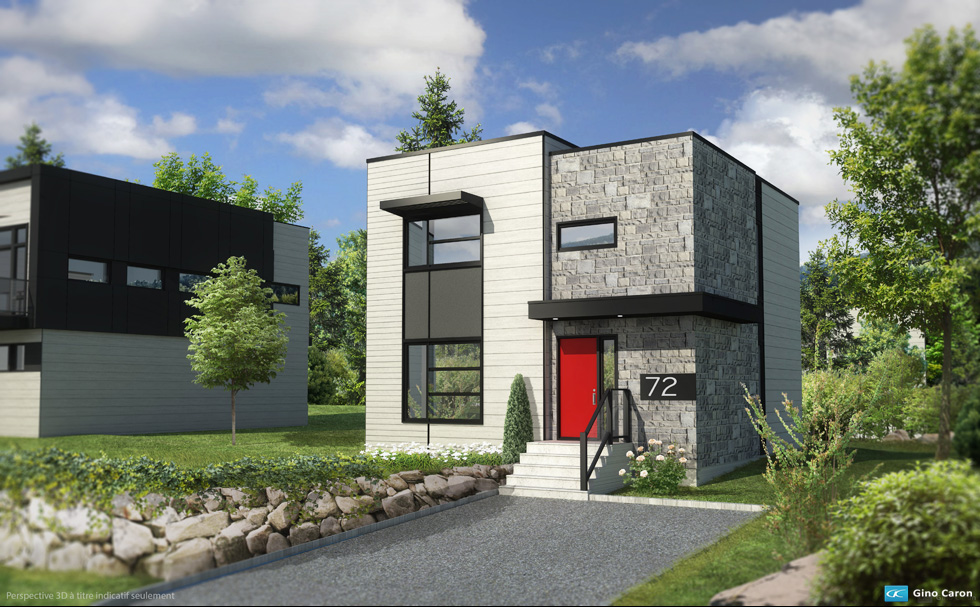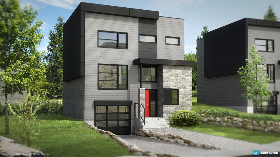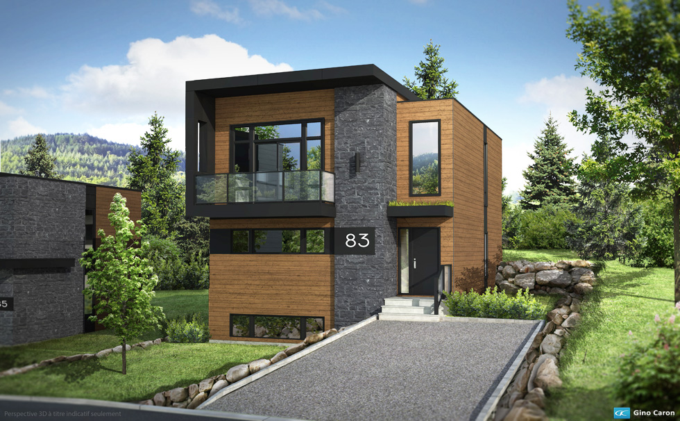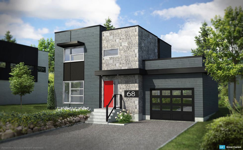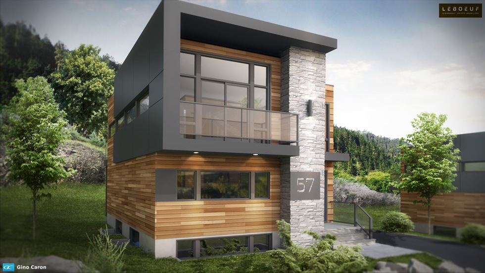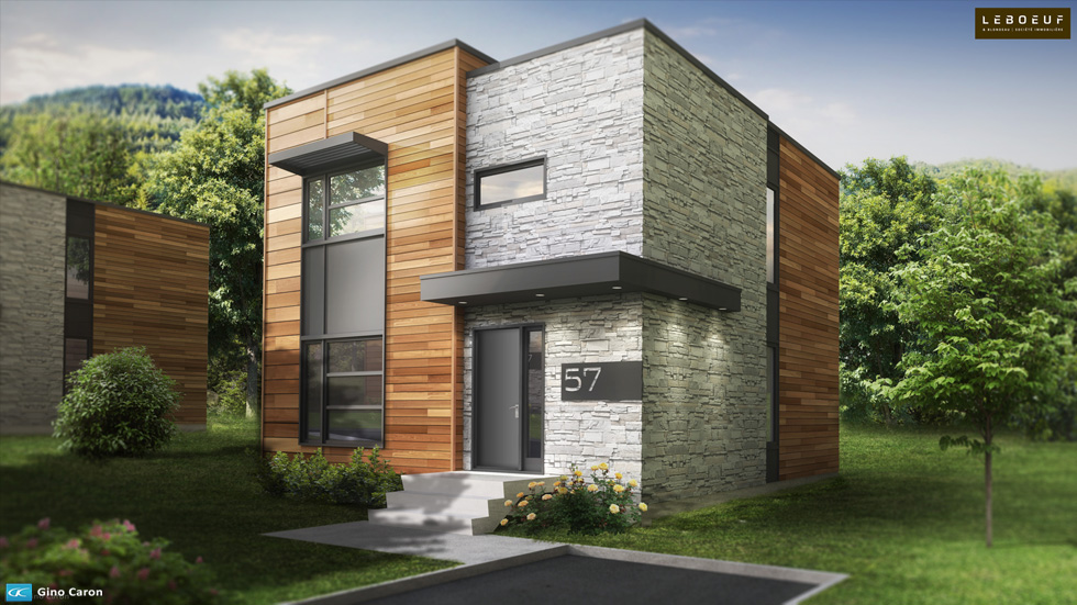 Plusieurs perspectives 3D de maison pour un projet résidentielle d’importance dans la région de Québec. Ce projet est réalisé par Leboeuf Société immobilière.