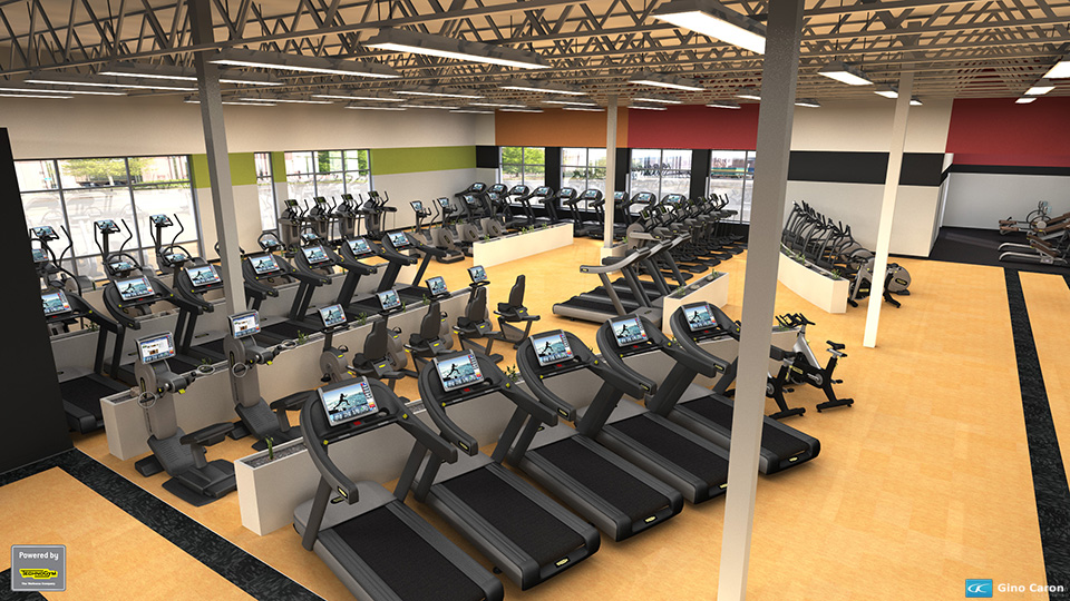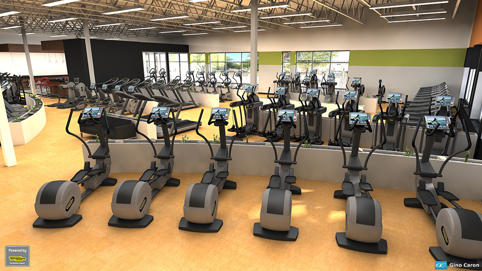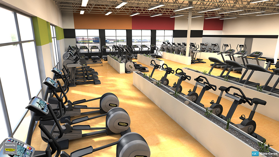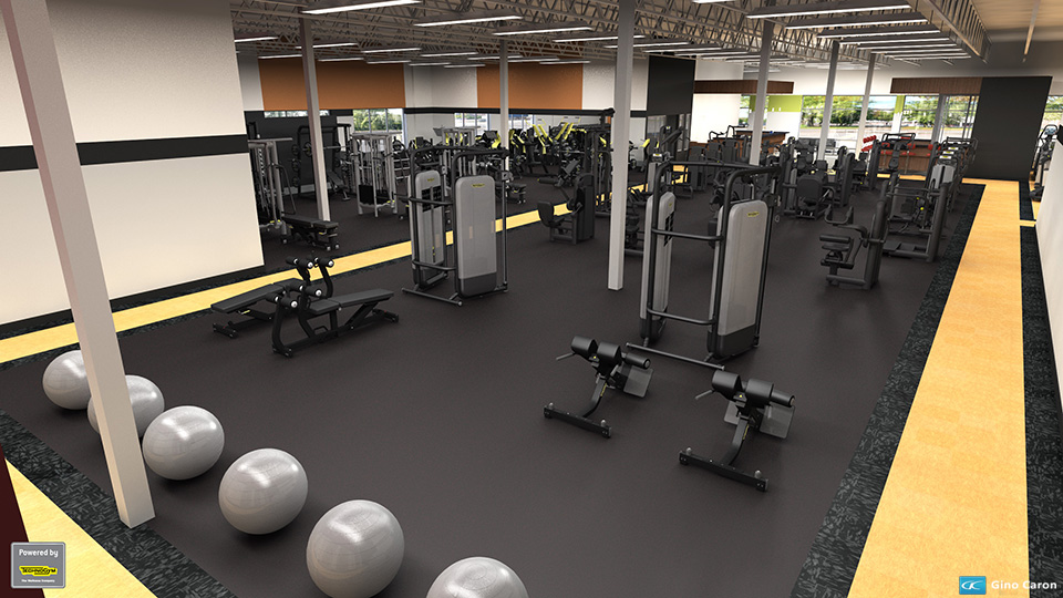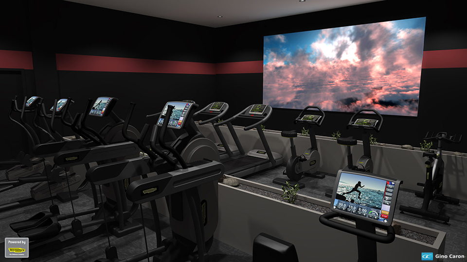 Réalisation de plusieurs vues en perspective 3D et d’une animation 3D. Projet réalisė pour Technogym Canada.